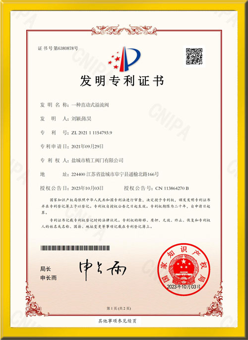 一種直動式溢流閥